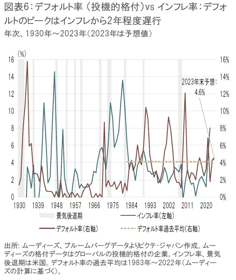 ■ 今後の見通し:デフォルト率のピークは米国のインフレのピークから2年余り遅行