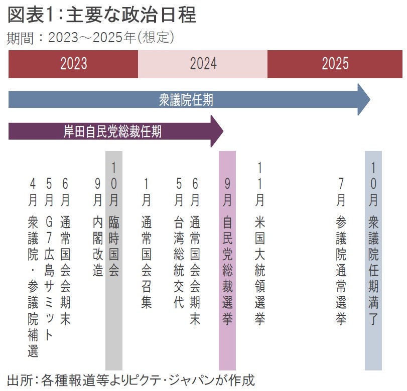 衆議院の任期は2025年10月30日までだが、その約1年前の来年9月に岸田首相は自民党総裁としての任期を迎える(図表1)。