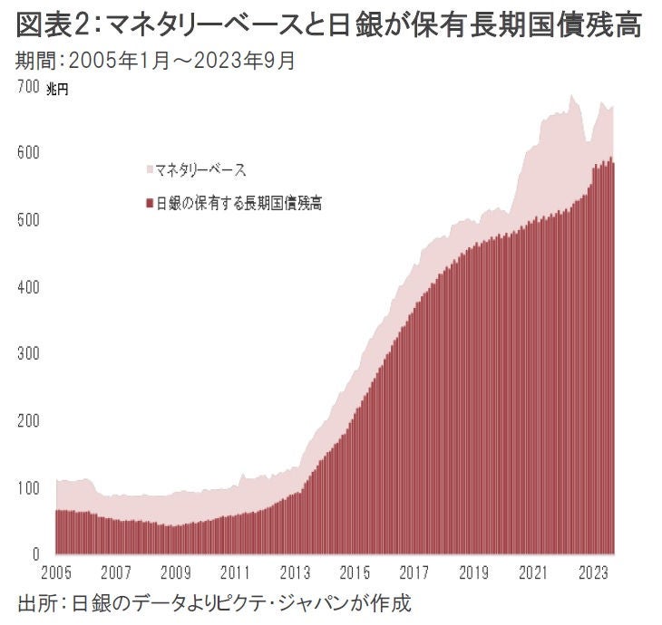 2013年4月4日に量的・質的緩和を採用して以降、日銀の保有する長期国債は今年9月までに493兆2,615億円増加した(図表2)。