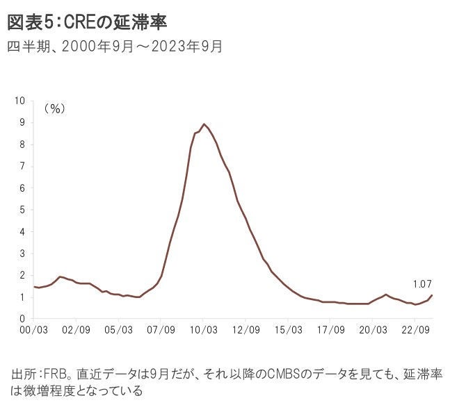 今のところ、CREローンの延滞率はさほど高くない(図表5)。しかし、今後については以下の点から楽観視できない。