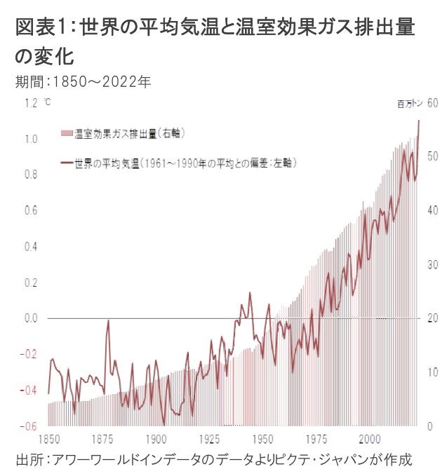 地球温暖化が加速している。昨年は2年連続で世界の平均気温が過去最高となった(図表1)。2024年についても記録更新のペースだ。