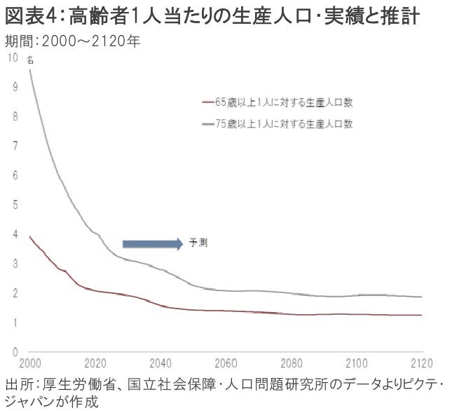 いずれにせよ、日本人のベースだと、足下、65歳以上の高齢者1人に対し生産人口は2.01人だが、2054年には1.41人になる見込みだ(図表4)。岸田政権は少子化対策に注力するものの、主要先進国の多くで出生率は構造的に低下しつつある。