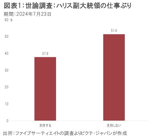 ただし、バイデン大統領が選挙戦からの離脱に際し、自らの後継者としてハリス副大統領への支持を打ち出したことで、民主党の新たな大統領候補として急浮上した。チャック・シューマー、ハキーム・ジェフリーズ上下院院内総務、ビル・クリントン元大統領、ヒラリー・クリントン元国務長官、ナンシー・ペロシ元下院議長など、民主党幹部、重鎮が支持を表明、候補者選定で投票権を持つ党大会代議員の過半数の支持を得た模様だ。