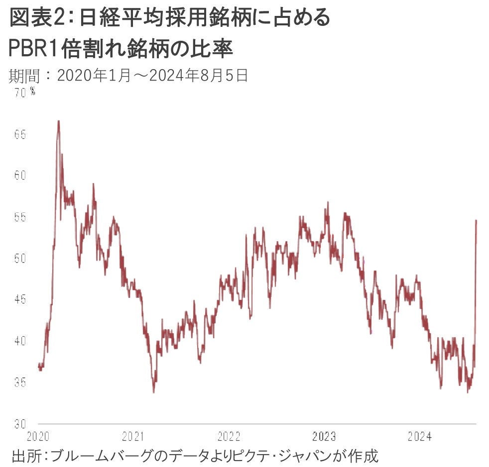 世界のマーケットが米国の景気後退を懸念、特に日本株の下げが大きい。8月5日、日経平均の下落率は12.4%に達し、株価純資産倍率(PBR)1倍割れの銘柄も54.7%になった。もっとも、2024年3月期決算で政策目的保有株式の圧縮を公約する企業が相次ぐなど、上場企業の経営には変化が見られる。バリュー、バリュエーションの両面から、日本株は売られ過ぎではないか。
