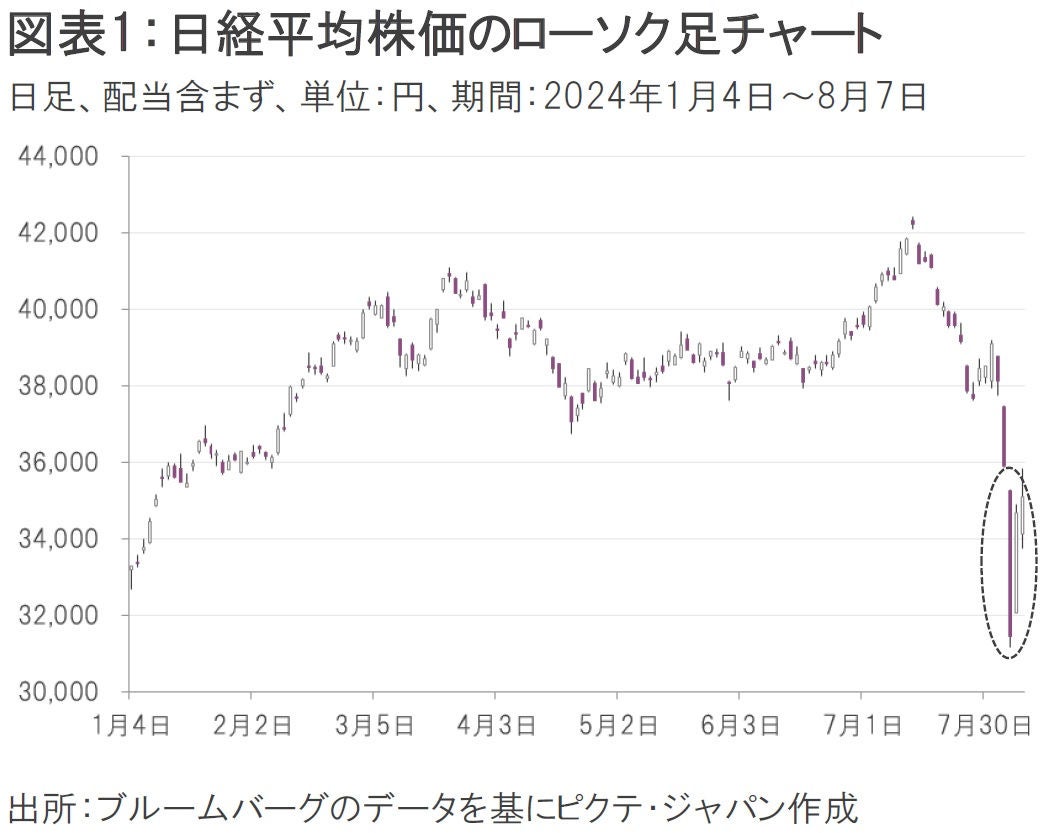 8月5日(月)の日経平均株価は前週末と比べて12.4%下落し、31,458円42銭となった。この下落幅は過去最大、下落率では過去2番目に大きいものとなり、日本版の「ブラック・マンデー」となった。当レポートでは、今回のパニック相場をもたらした要因について分析するとともに、8月7日(水)の内田日銀副総裁のハト派発言についても考察する。