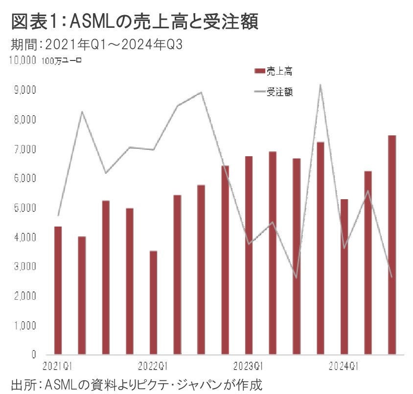 決算の結果を見ると、売上高は前年同期比11.9%増、純利益は同9.7%増で3四半期ぶりの増収増益で、足下の数字が悪かったわけではない(図表1)。問題は受注額だ26億3,300万ユーロであり、4-6月期に比べ52.7%の落ち込みとなった。昨年以降、受注は不安定化していたが、今回は市場想定の5割程度だったことから、半導体市況全般の先行きに対して、株式市場に懸念が台頭したと言えるだろう。