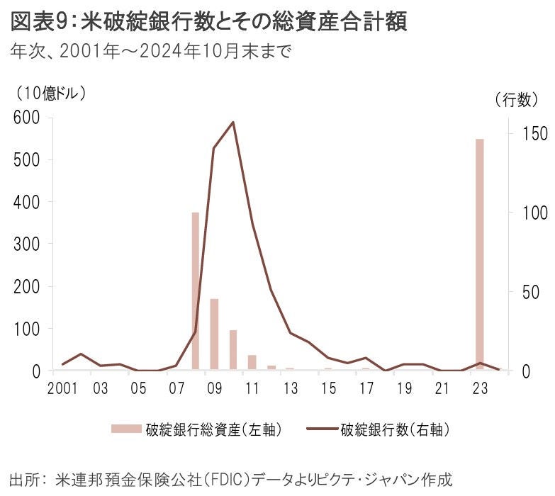 こうした規制緩和によって、金融システムの安全性が危険に晒されることはないだろうか。この点については、セーフティネットが鍵となるだろう。2009年~11年には400行近くの銀行が破綻したのに対し、2023年の危機時は、破綻銀行の総資産額は大きかったにも関わらず、破綻銀行数は僅か5行に留めることができた。危機の波及を食い止められた理由は、監督当局が預金の全額保護等で事態を早急に収拾し、その後預金保険準備金の減少分を大手行への特別賦課金で補填したためだ。大手行の利益もリーマンショック直後比で2倍以上に拡大しており、リスク負担余力は高い。