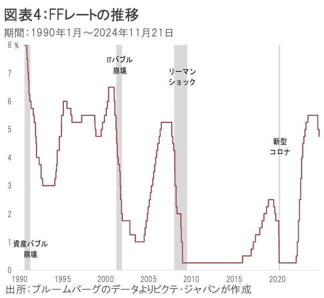ただし、1990年代以降の過去4回の利下げ局面とは異なり、今、米国経済が危機的な状況になっているわけではない(図表4)。また、労働市場は依然として逼迫しており、失業率は歴史的な低水準で推移している。