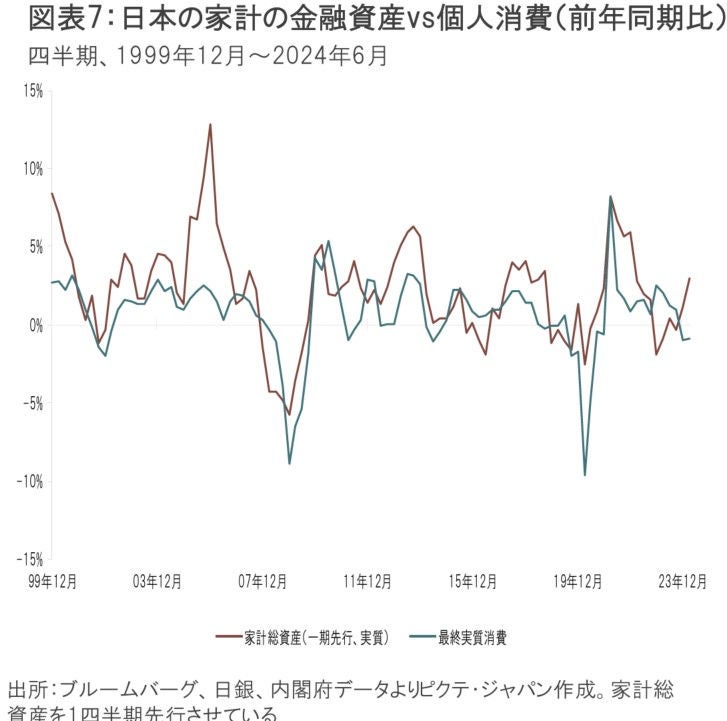 米国等に比べると弱いものの、日本でも、個人の保有資産の価値上昇が消費を促すという「資産効果」(下落時の消費抑制は「逆資産効果」)が観測される(図表7)。このため、金利の上昇によって住宅価格が下落するなら、これを通じて消費意欲が減退するリスクには注意が必要である。