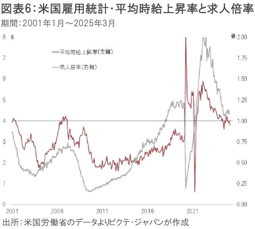 一方、トランプ大統領は、国境管理を強化すると共に、不法在留者に対し国外退去など厳しい姿勢を明確にしてきた。ただし、不法在留者を含む移民は、米国経済にとり重要な労働力の供給源であることも事実だ。米国の人手不足は続くだろう。