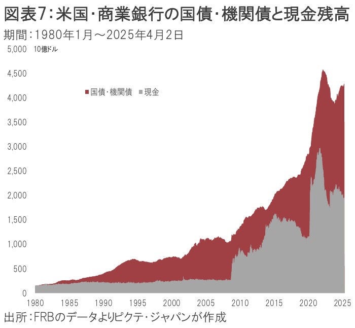 FRBによれば、4月2日現在、米銀が保有する現金の残高は1兆9,491億ドルだ。これは、預金に対して11.7%に達する。仮に一部の銀行が経営難に陥っても、他の健全行にとっては、2023年同様、規模を拡大するチャンスになるのではないか。