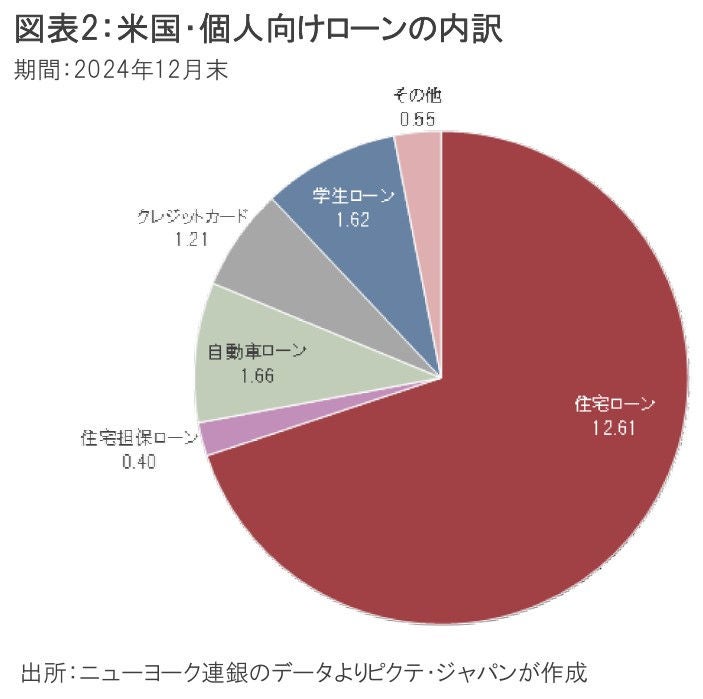 昨年末におけるクレジットカードの与信額は、個人向け融資残高の6.7%だった(図表2)。住宅ローンは69.9%であり、延滞やデフォルトによる金融システムへの影響は全く異なるだろう。