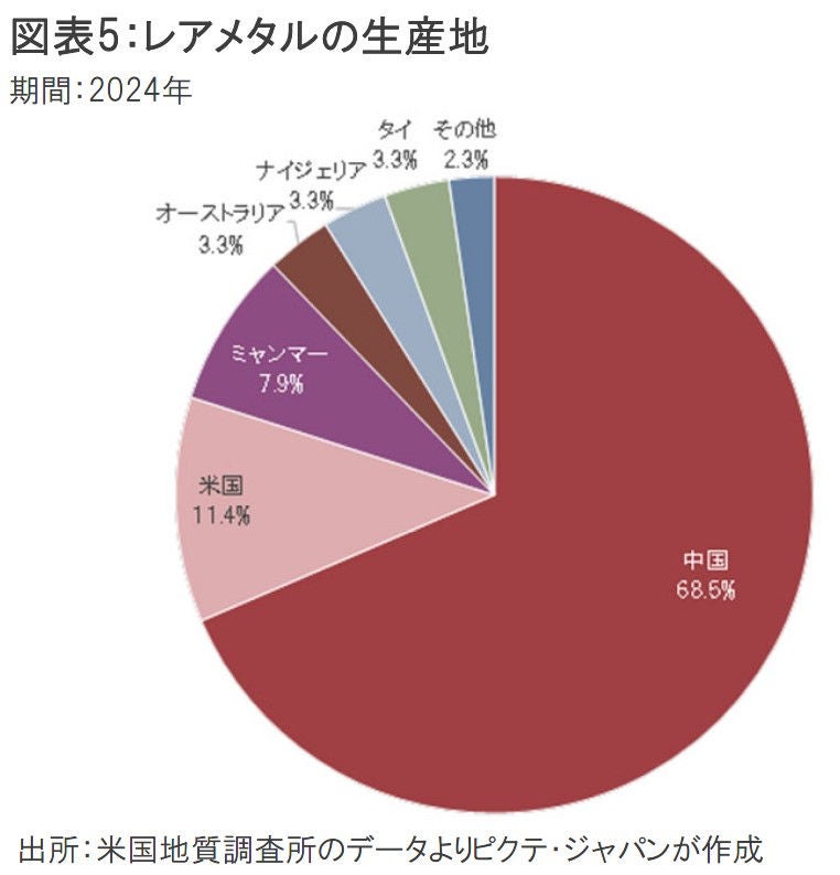 また、中国との通商戦争を戦う上で、米国にとってもう一つの大きなハンディキャップは、レアアース、レアメタルではないか。米国地質調査所(USGS)によれば、昨年、世界で産出されたレアアースのうち、68.5%が中国産だった(図表5)。レアメタルの多くについても、中国が世界有数の産地であり、確認された埋蔵量も最大になっている。