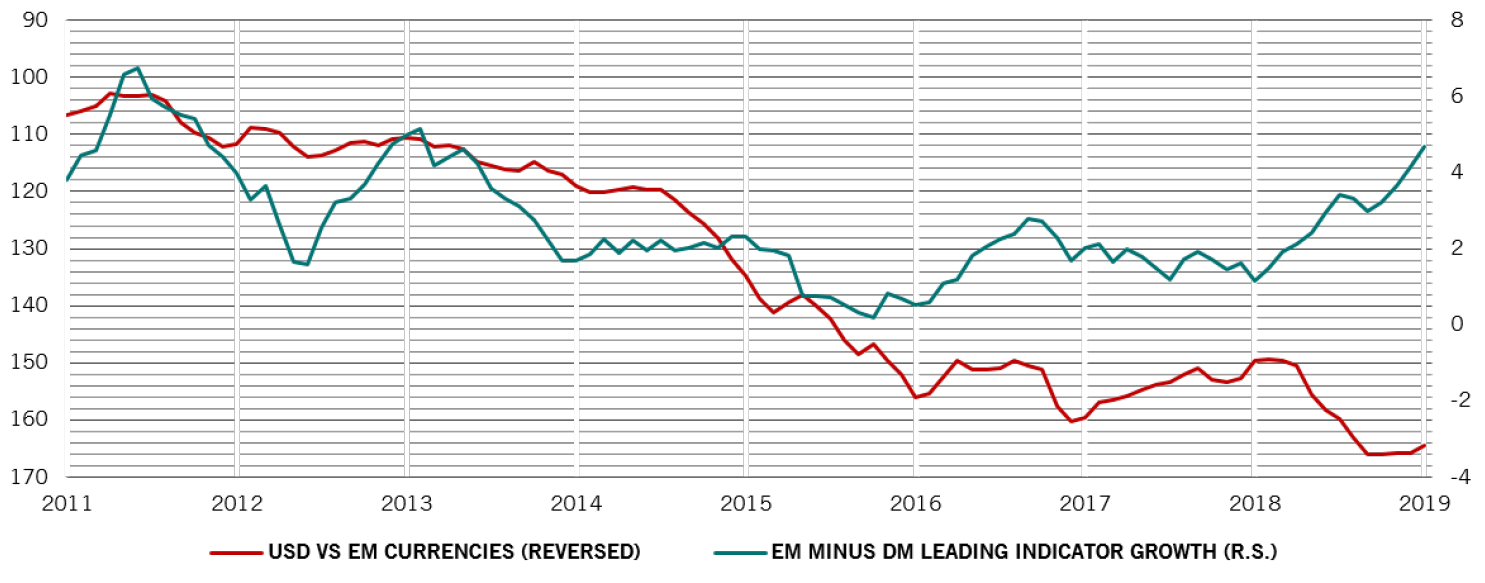 このことは極めて重要です。世界経済の減速が一様ではなく、かつ、新興国経済が先進国経済を上回って成長する状況で、新興国通貨がドルに対し年率平均1.7%上昇したことをピクテの分析は示唆しています。