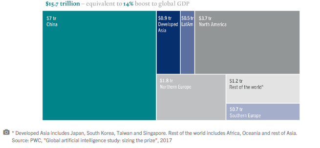 2030年までに、AIは世界のGDPを14%(約15.7兆ドル分に相当)押し上げる効果があると期待されています。