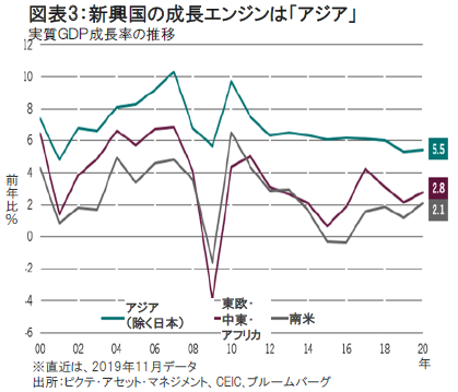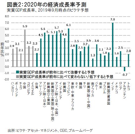 ピクテでは、2020年の新興国各国の経済成長率は、ア ルゼンチン以外の各国でプラス成長を見込んでいます(図 表2参照)。