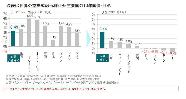 安全資産の利回り低下で代替として世界公益株式の投資魅力