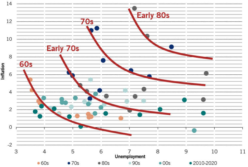 急速な物価上昇と⾼い失業率は、50年前における特異な現象であって、現在の状況に反映されるとは⾒ていません。