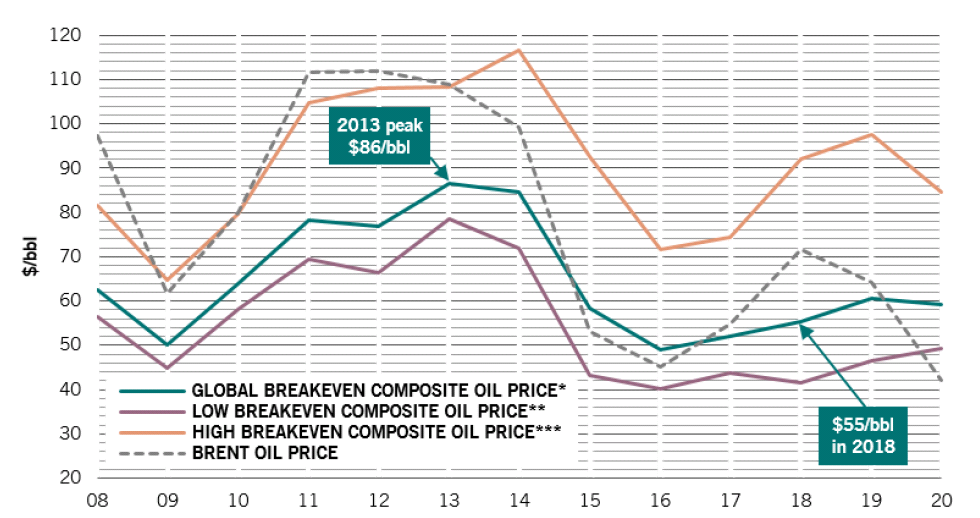 2013年の過去最高水準以降、産油12ヵ国は主に輸入削減により対外収支均衡油価を引き下げました