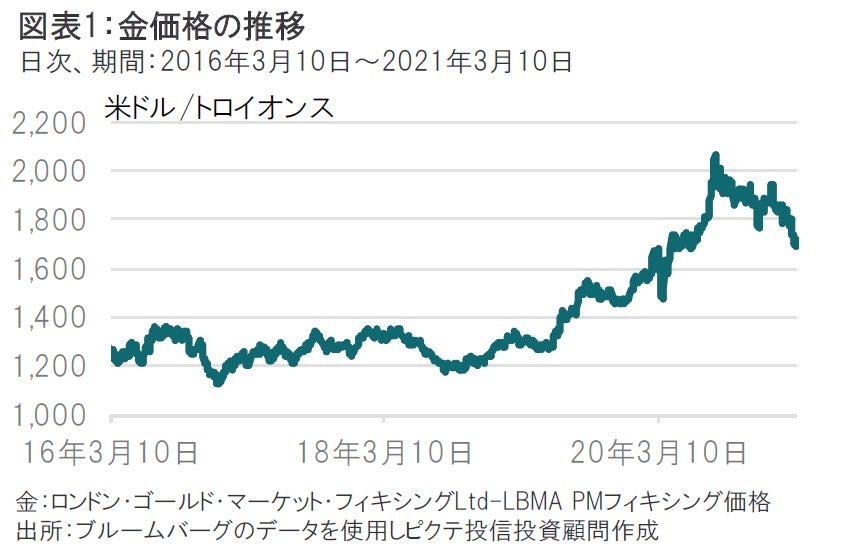 足元、金価格は軟調な推移となっています(図表1参照)。