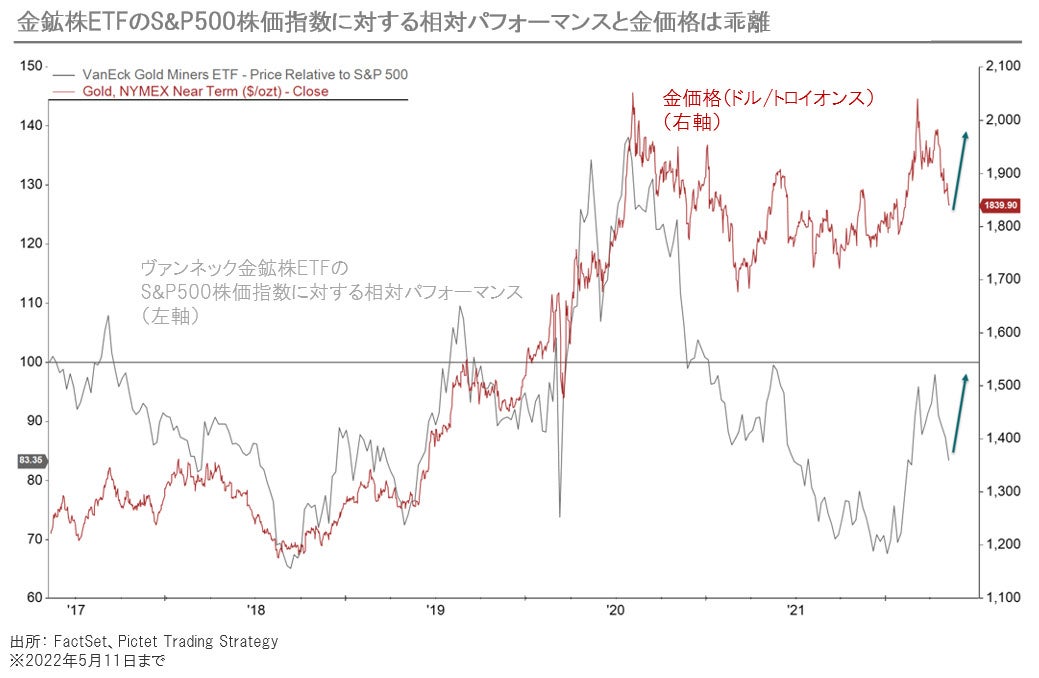 4月以降、市場全体をアンダーパフォームしている金鉱株は、金の価格が再び上昇基調となれば、反発する可能性があります。