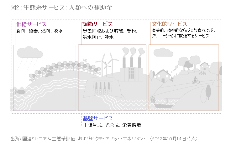 生物多様性は気候変動と並ぶ喫緊の環境課題であることから、規制当局や政策立案者は、生物多様性に係る税制、許可、生物多様性オフセット等を導入し、自然資本をGDP等の経済統計に組み込んでいく公算が大きいと思われます。生物多様性の喪失が企業に及ぼす様々な脅威を理解することで、投資家は、こうしたリスクを正しく評価し、現行のESGの枠組みとの乖離を認識し、自然資本への新しい投資手法を見出していくものと考えます。