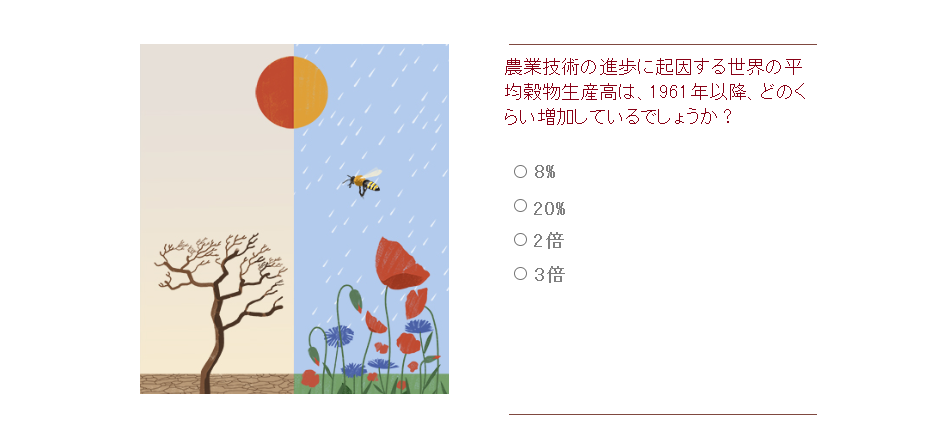 一例を挙げると、アグリテック(最先端技術を駆使する農業)の発展のお陰で、世界の穀物生産高は、1961年当時の約3倍に増えています。