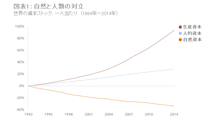 人類の繁栄は、1万年以上にわたって、食糧、清浄な空気、水、肥沃な土壌等、自然資本の蓄積を取り崩すことを中心に実現してきました。
