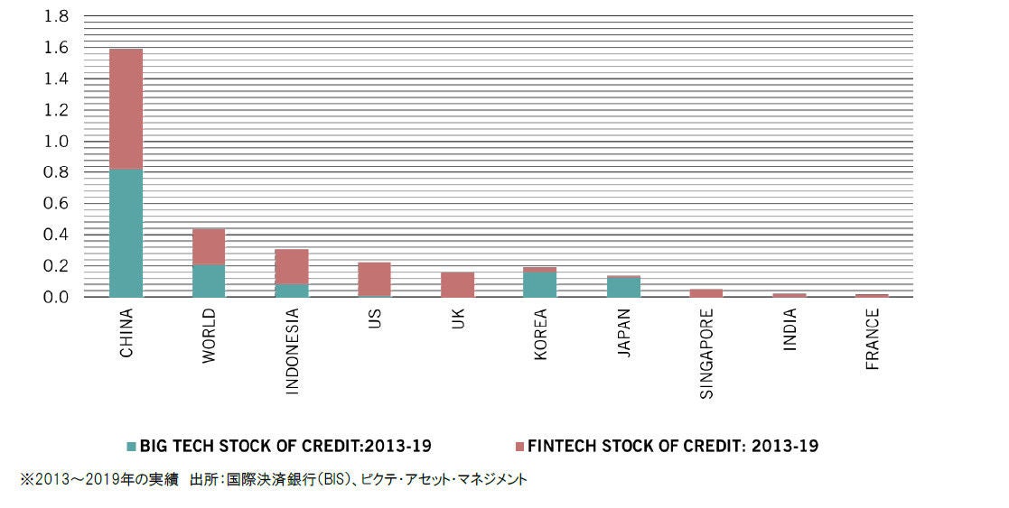 デジタル技術を活用するような非伝統的な手法を用いた与信は、新興国においても急速に拡大しています。ケニアでは、与信全体の約6%、中国では同約2%が新しい手法を用いた与信が占めています。一方、先進国ではこの割合は1%以下にとどまっています。
