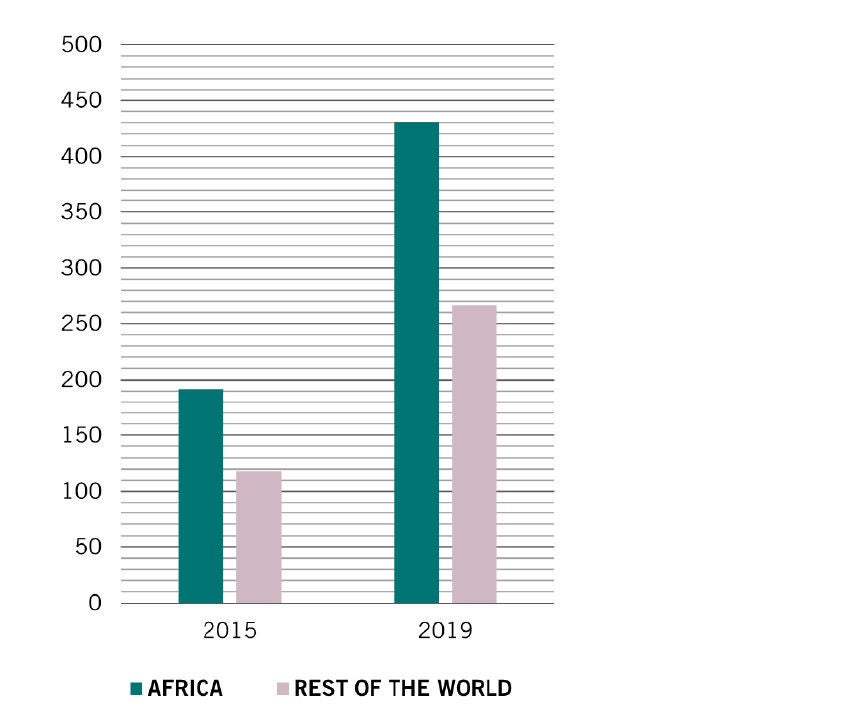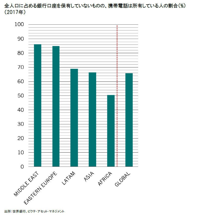スマートフォンによって、人々はインターネットへのアクセスと、モバイル口座へのアクセスができるようになりました。インターネット普及率をみると(2019年)、アフリカでは全人口の約29%と依然として低水準にとどまっていますが、ここ最近、急速に普及が進んでいます。