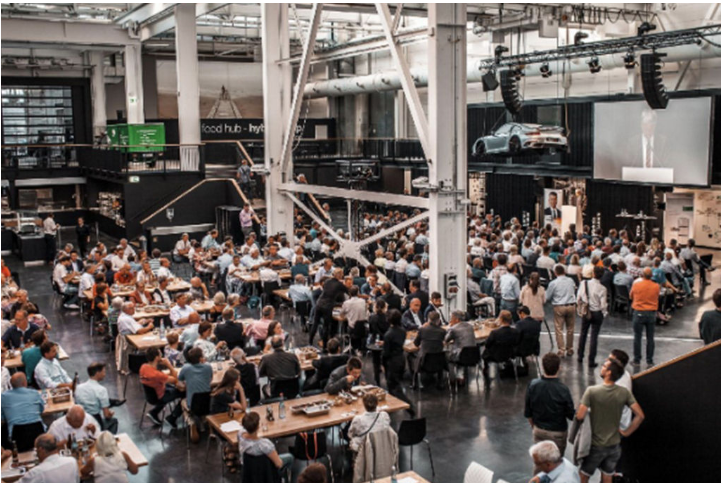 アーバンハーバーはシュトゥットガルト近郊の街、ルートヴィヒスブルクにあり、複数の工場が集まった総面積20万平方メートルの古い工業用地です。1914年に建てられたコンクリート造りの産業会館を中心とした敷地内には、ドイツの自動車メーカーの最先端技術を駆使した拠点があり、ビール釜を製造していた当初の様子とは大きく姿を変えています。
