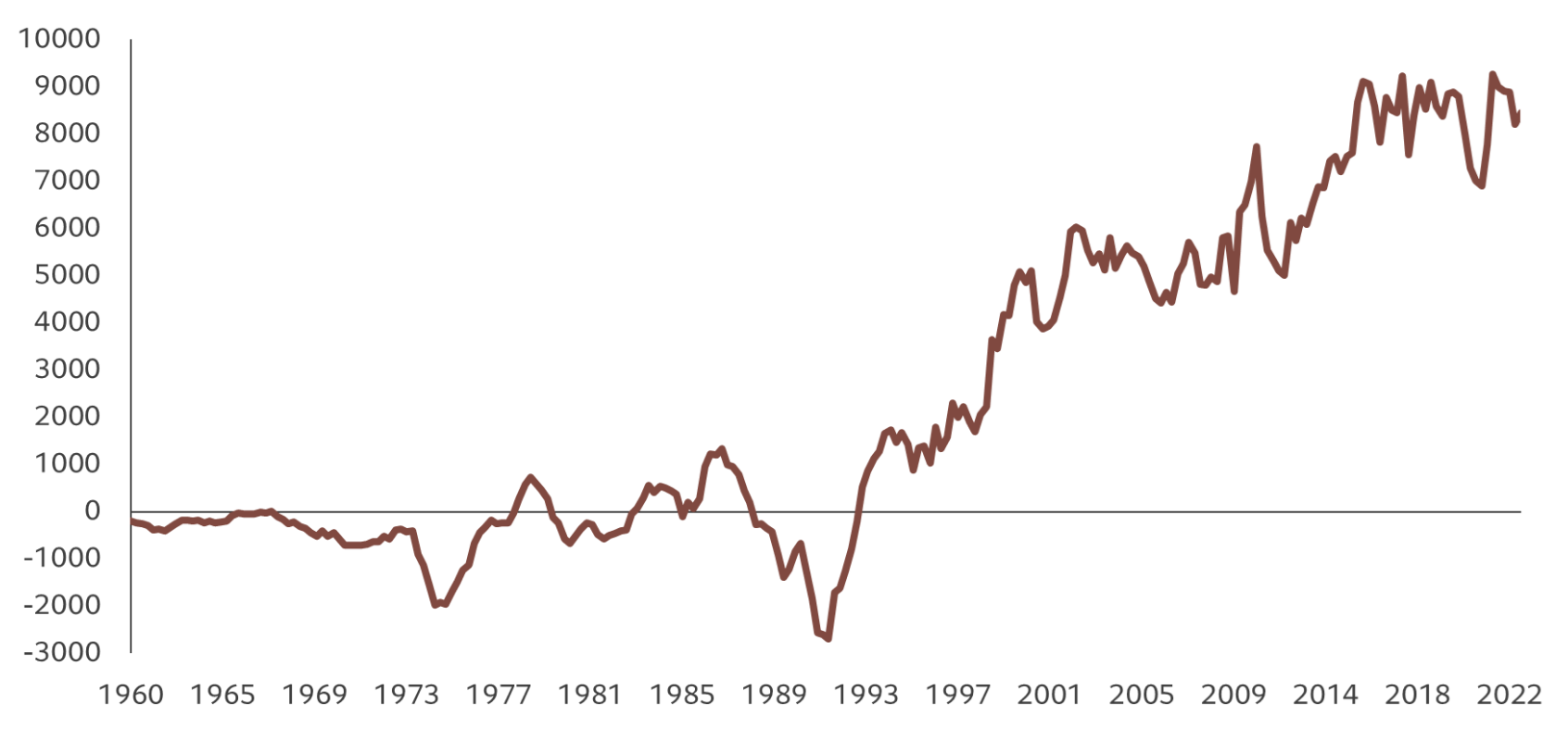 出所 : 財務省のデータをもとにピクテ・アセット・マネジメントが作成、期間 : 1960年12月1日-2022年9月1日