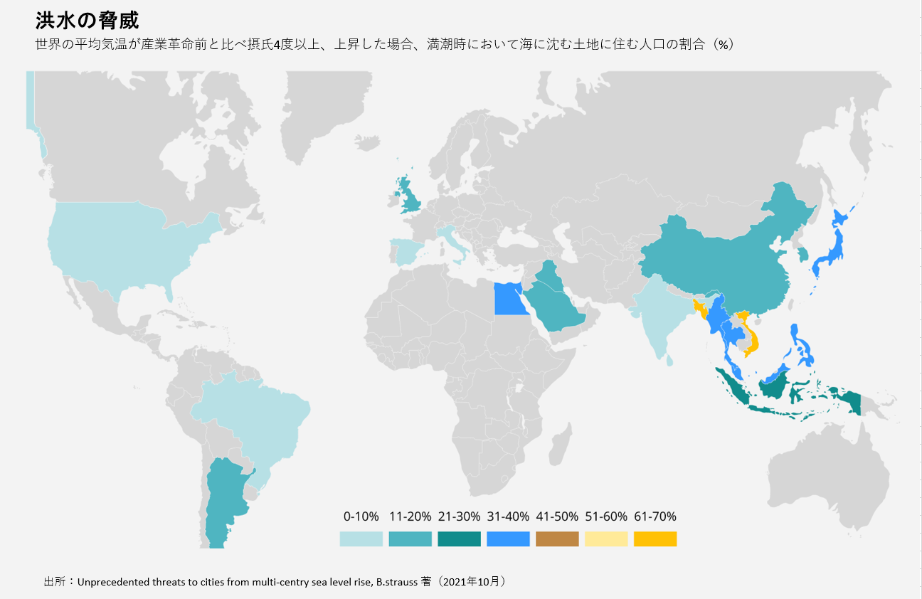 「今」心配する必要があるかどうかについては、海抜の低いベトナムを例に説明しています。「大方の予想通り、気候変動が今のペースで進むとしたら、ベトナムでは国土の9割が、少なくとも毎年1回、海水に浸かることになります。ベトナムは世界3位の米の生産国ですが、一度塩害に遭った土地での生産は極めて難しく、国境から遥かに離れた場所にまで影響が及ぶものと考えられます。人間が暮らす空間だけでなく、全世界の食糧生産が危機に瀕するという深刻な状況についてお話しているのです。」