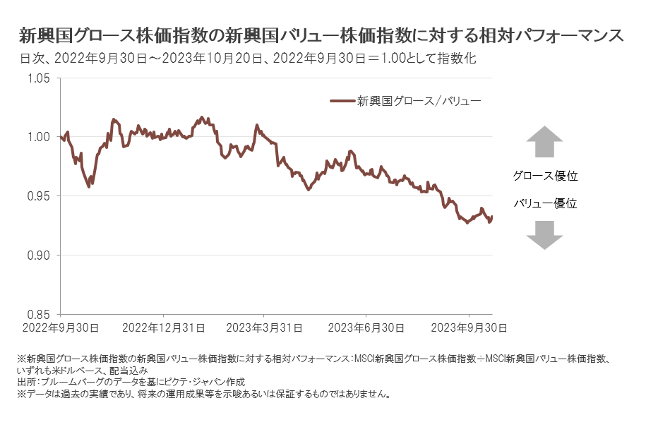 5月にはAI(人工知能)関連株が注目され、新興国株式市場においてもハイテク関連中心にグロース(相対的に成長性の高い)銘柄が優位となる局面もありました。しかし、その後は再びバリュー(相対的にバリュエーションの低い)銘柄優位に戻っています。