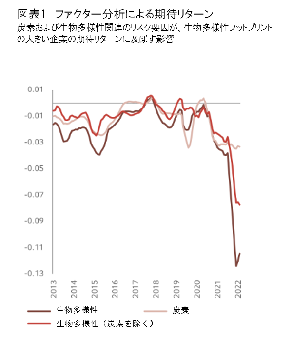 「研究結果は、特に自然の搾取への依存度が高い企業にとって、生物多様性リスクが炭素リスクと同様の主要なリスク要因になる、との市場の見方を示しています。」と報告書は伝えています。