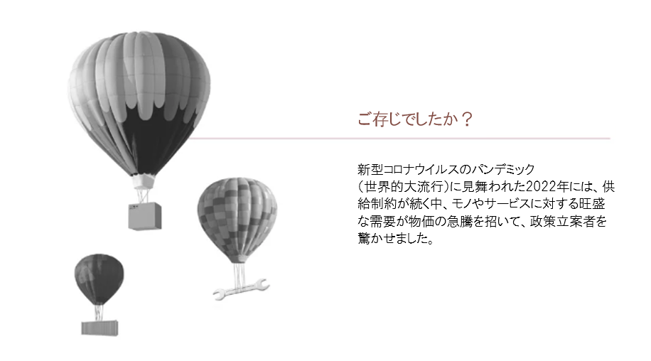 国債の発行を通じた政府支出の拡大によってマネーが市場に流入し、インフレを加速させました。また、サプライチェーンの混乱と、コロナ禍の退職者の増加を受けた労働市場の縮小に起因する人手不足、貿易摩擦、エネルギーコスト上昇等の、いわゆる「供給サイド」の要因とが相まって、インフレが悪化しました。