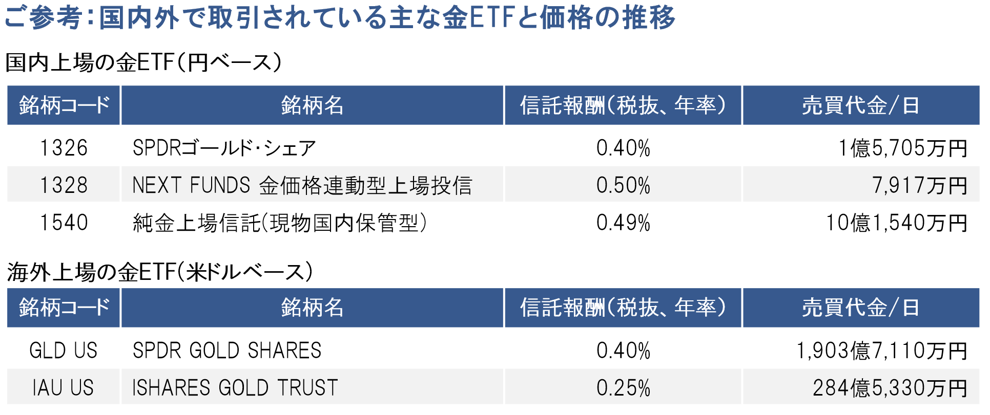 ※海外上場の金ETFの売買代金は上記期間の平均為替レート(1米ドル=144.54円)で円換算。
