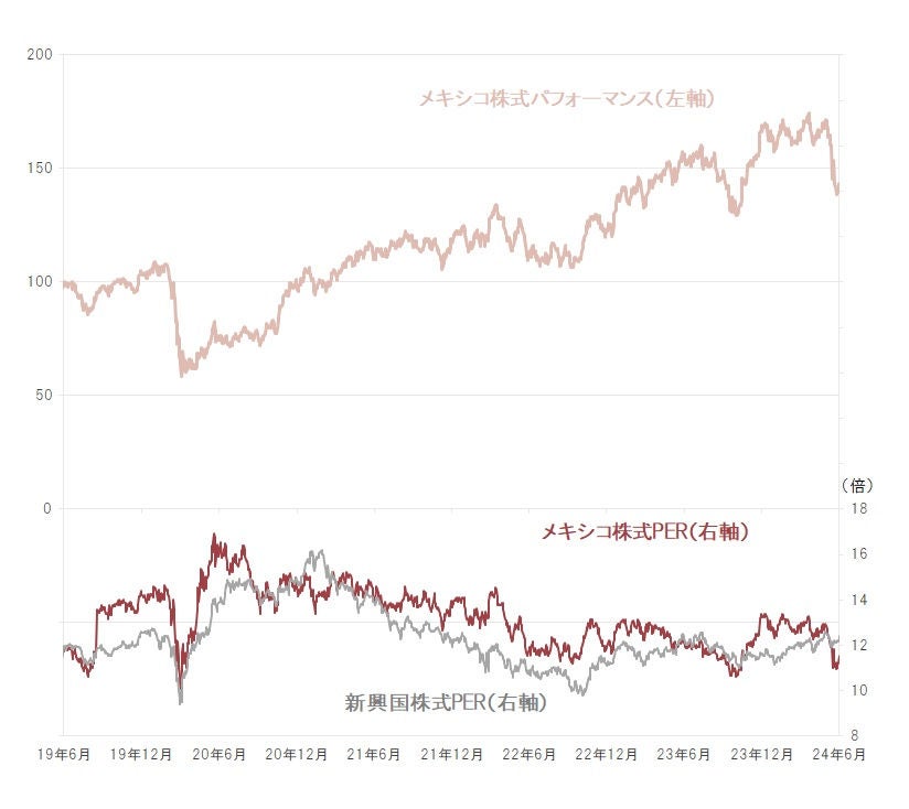 ※メキシコ株式:MSCIメキシコ株価指数、新興国株式:MSCI新興国株価指数 ※株価指数は配当込み、米ドルベース ※予想PERはブルームバーグ集計アナリスト予想平均、12ヵ月先予想