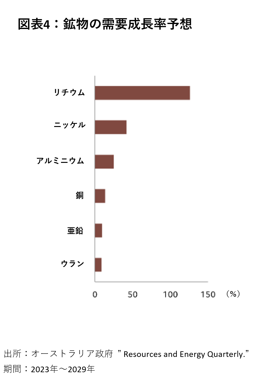 これらの国々の多くは資源が豊富であり、クリーンエネルギーへの移行に必要な金属や、軍事・技術用途の戦略的鉱物の主要な供給源となっています。そして、これらの資源に対する需要は今後もますます増加するでしょう(図4)。