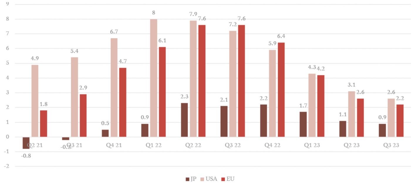 日本におけるインフレの状況は世界のトレンドに逆行している