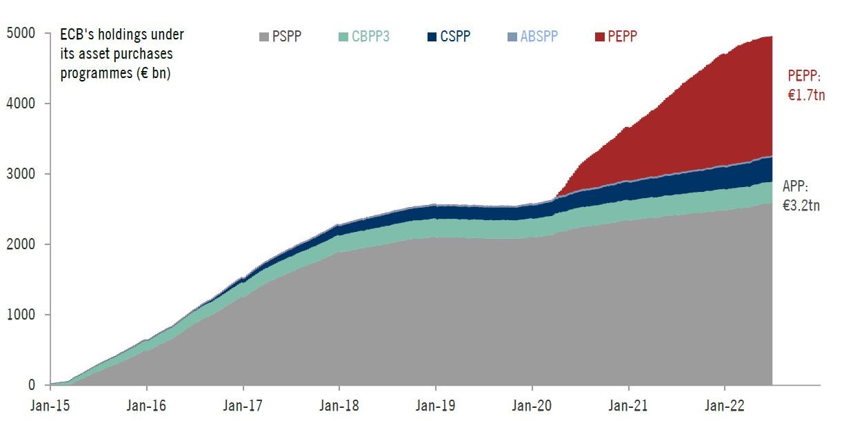 イタリアのリスクだけでなく、バランスシートの構成からも、ECBは中央銀行の中でも特殊なケースと言えるでしょう。柔軟性を持つ総額1兆7000億ユーロのパンデミック緊急購入プログラム(PEPP)から発生する償還金再投資は市場分断化を防ぐための第一の防衛策として使用されます。