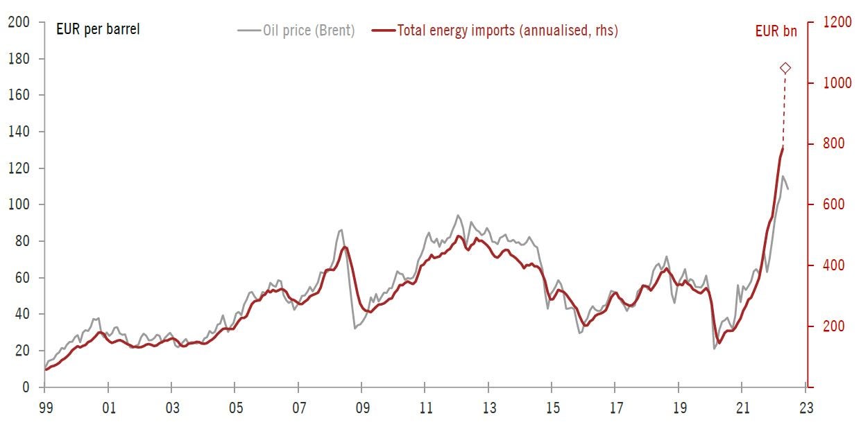 図1:ユーロ圏エネルギー輸入総額と原油価格