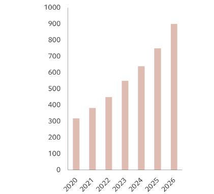 ITサービス会社のインターナショナル・データ・コーポレーションでは、今後ハードウェア、ソフトウェア、サービスを含む世界のAI市場は、毎年19%近く成長し、2026年には9000億米ドルに達すると予想されています(図1参照)。今後の成長予測はこれに留まらず、ゴールドマン・サックスは、AIがもたらす生産性の向上などから、今後10年間で世界経済に約7兆米ドルのプラスをもたらすと予測しています。