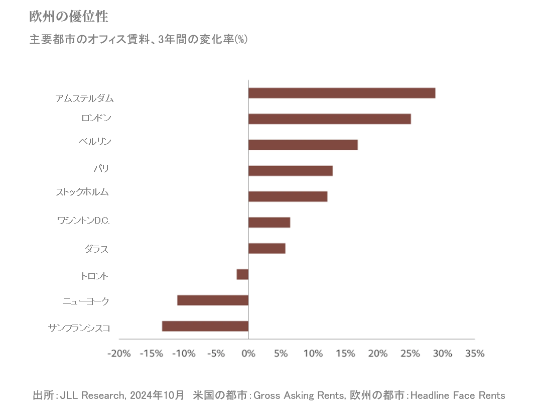 賃料の上昇と金利低下による不動産価値の上昇が見込まれることを勘案すると、現時点で欧州不動産への投資は明らかに魅力的であると言えます。