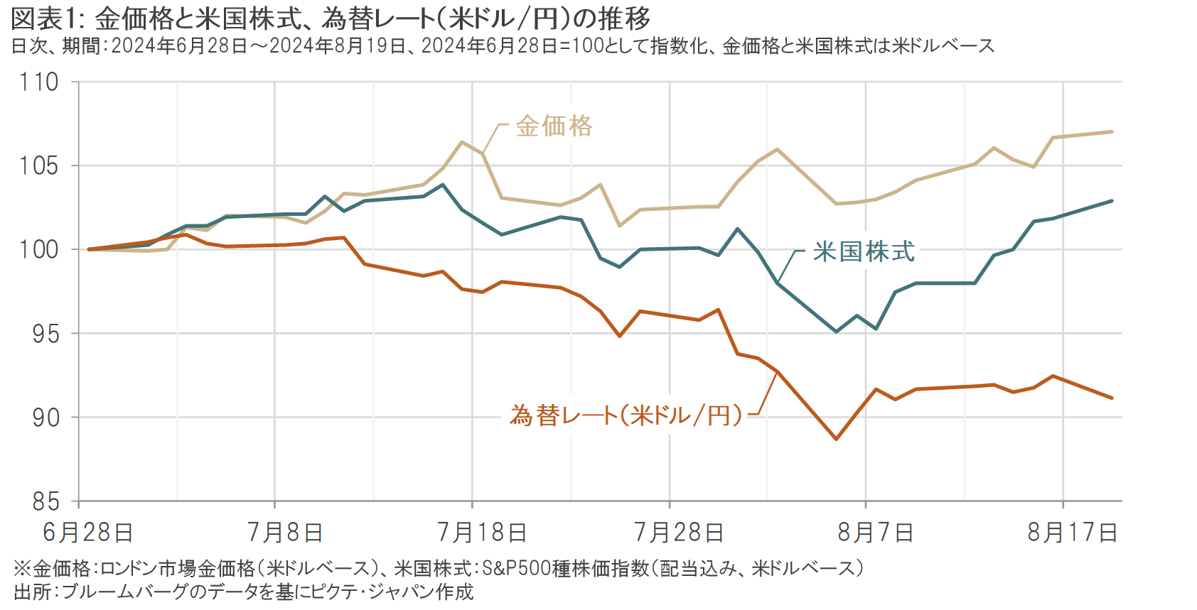 世界の金融市場は2024年7月以降、米国の景気減速懸念などを背景に大きく変動し、金価格も一時的に値動きの大きい展開となりました。しかしその後、金価格は8月中旬にかけて底堅く推移し、足元では過去最高値を更新しました(米ドルベース、図表1参照)。