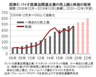 バイオ医薬品関連企業の売上高は相対的に高い伸びが見込まれる
