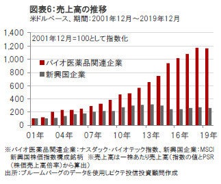 バイオ医薬品関連企業の売上高は、新興国の企業を上回って堅調に成長してきました。(図表6参照)