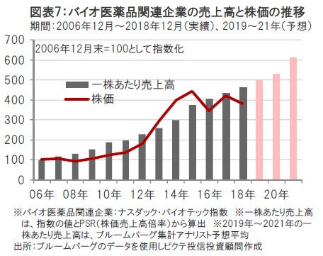 バイオ医薬品関連企業の売上高は相対的に高い伸びが見込まれる