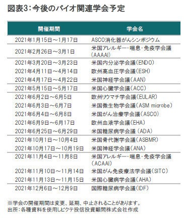 一方で新型コロナウイルス関連については、市場規模がそれほど大きくない可能性や複数の競合の存在、開発資金を提供してきた各国政府によるワクチン価格の上限設定が予想されることにも注意が必要です。