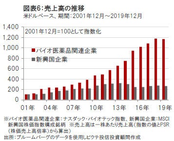 バイオ医薬品関連企業の売上高は、新興国の企業を上回って堅調に成長してきました。(図表6参照)